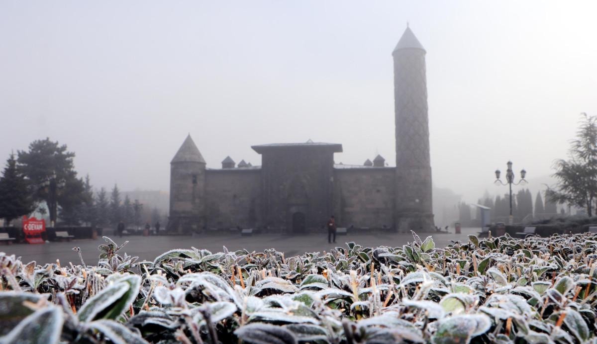Dün gece hava sıcaklığının sıfırın altında 10 dereceye kadar düştüğü Erzurum'da, sis etkili oluyor.