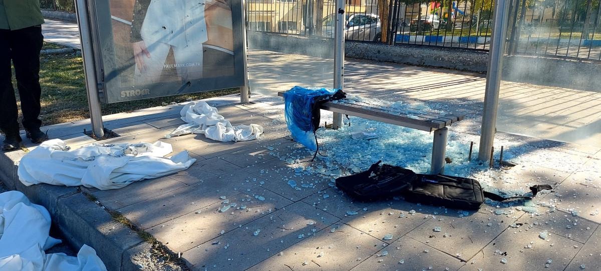 Ayrıca, patlamanın etkisiyle otobüs durağının camları parçalandı.