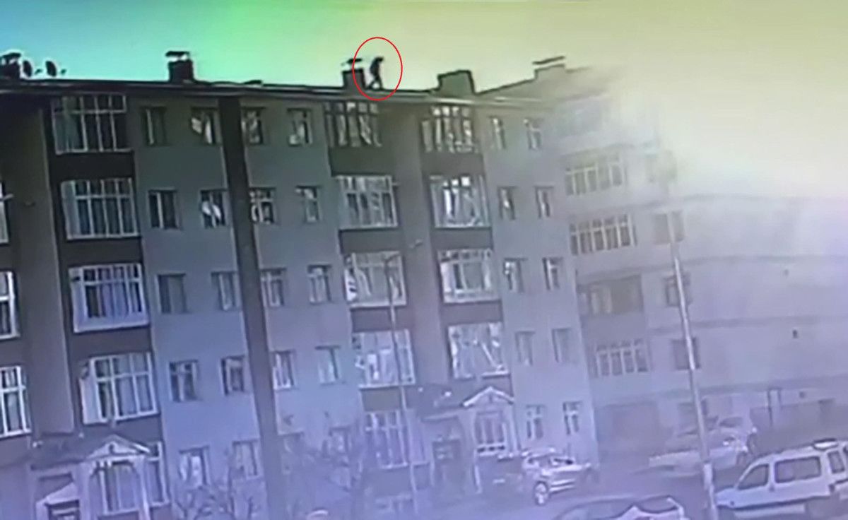 Akın'ın çatıdan düştüğü anlar, saniye saniye güvenlik kamerasına yansıdı.