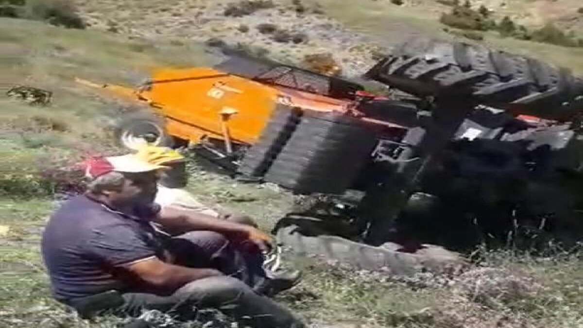 Yamaç olan tarladaki çalışma sırasında Yıldırım'ın kontrolünden çıkan traktör, takla attı.