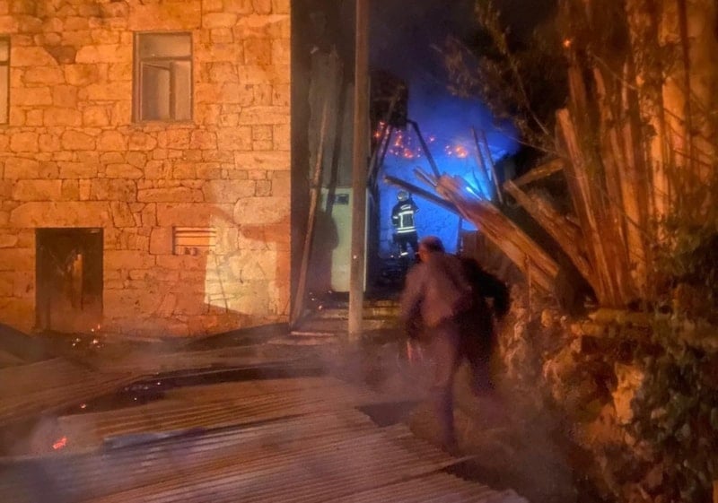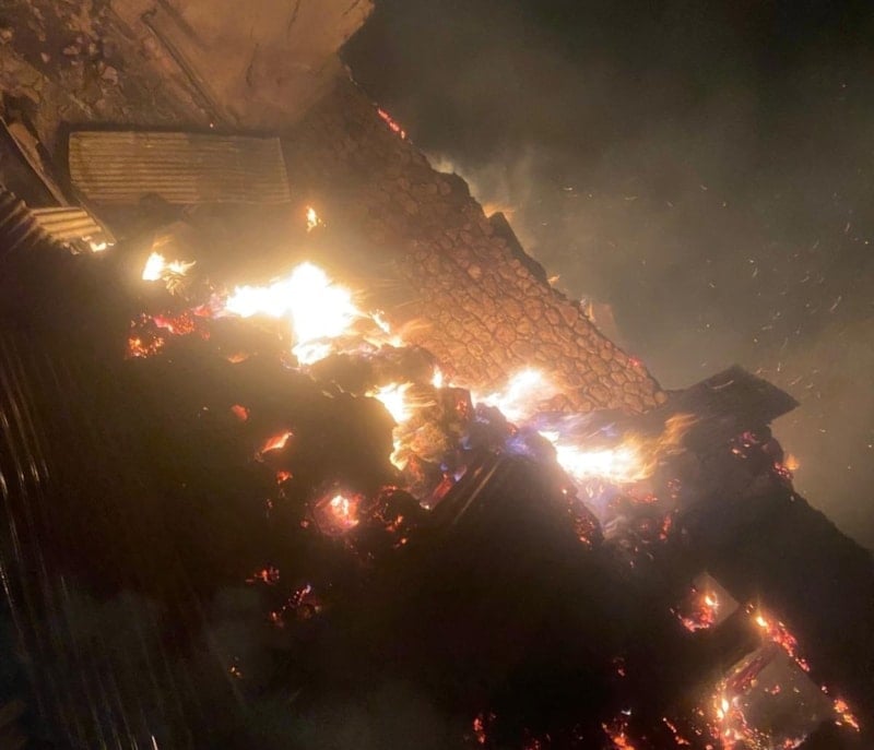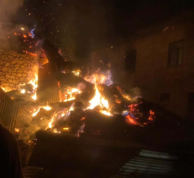 Soğutma çalışmalarının devam ettiği yangında evler, ahır ve bazı samanlıklar kullanılamaz hale geldi.