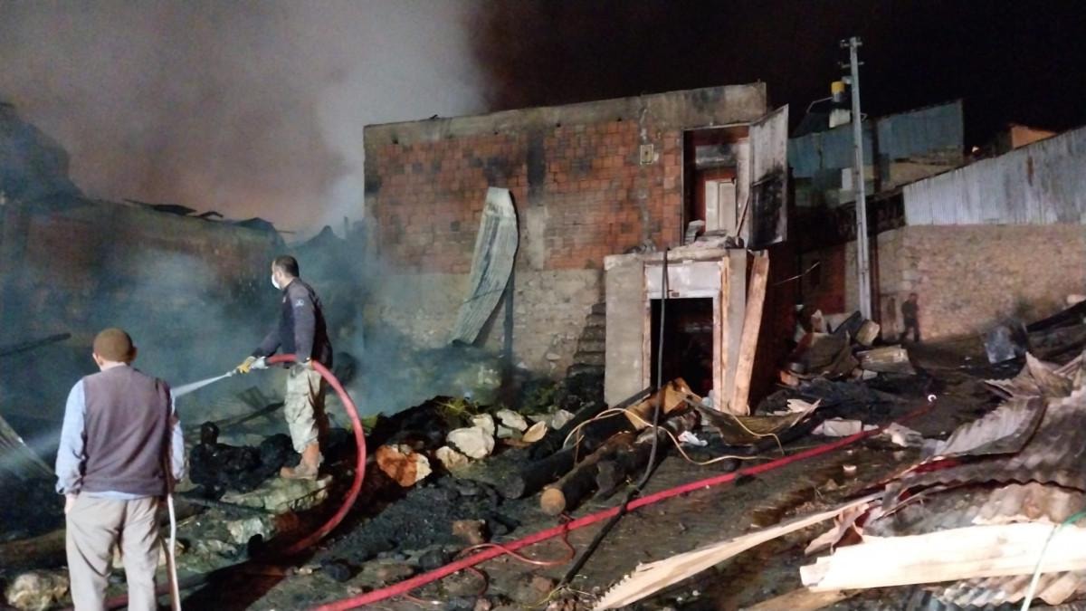 Soğutma çalışmalarının devam ettiği yangında 7 ev ve 8 ahır kullanılamaz hale gelirken harabeye dönen bölgede enkaz kaldırma çalışmalarına başlandı.