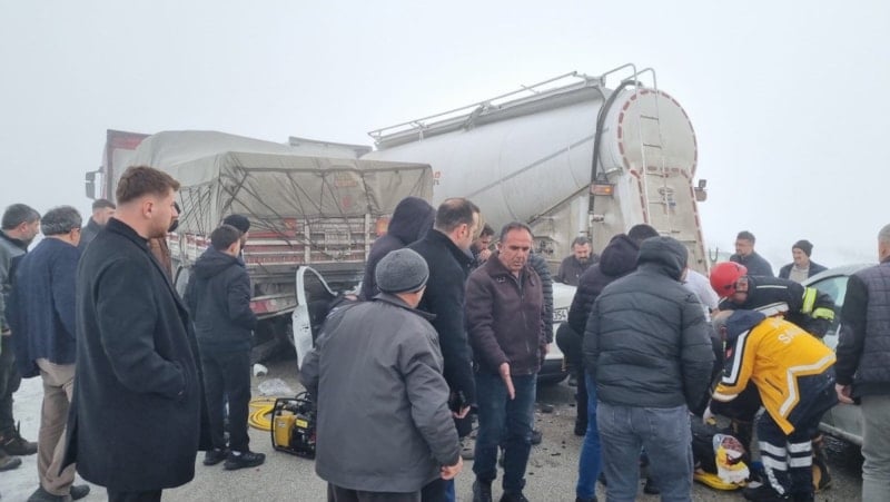 Kazaya karışan araçlardan yaralıların çıkarılma çalışmaları devam ederken, 8 kişinin sağlık durumunun ağır olduğu bildirildi.