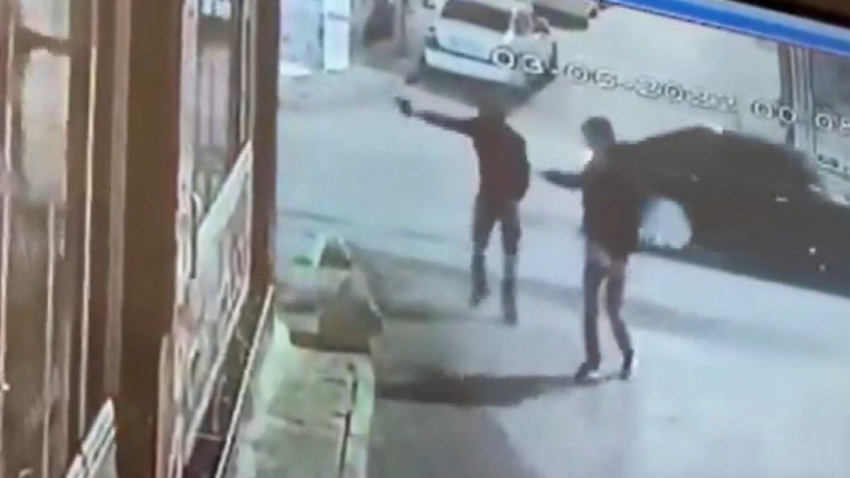 İstanbul'un Esenler ilçesine bağlı Turgut Reis Mahallesi'nde bulunan dönerci dükkanı, gece saatlerinde bilinmeyen bir nedenle iki şahıs tarafından kurşun yağmuruna tutuldu.