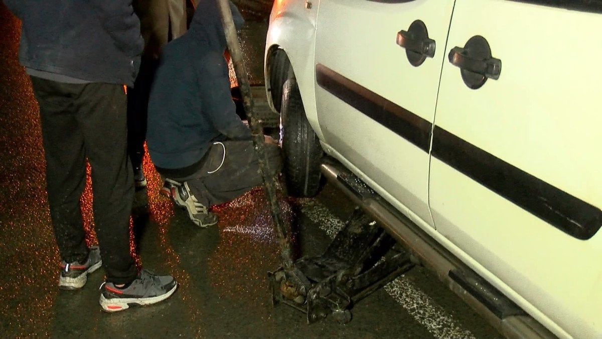 - İstanbul'da yağış sonrası su dolan çukura giren 30 aracın lastiği patladı.