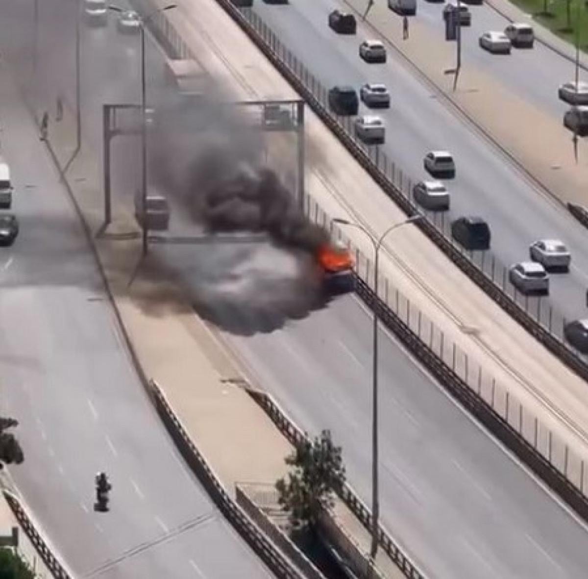 Kamyonet alev alınca sürücü hızla araçtan çıkarak kendini dışarı attı. Ancak alevler içindeki araç, sürücüsüz bir şekilde E-5’te ilerlemeye devam etti. Korku dolu anlar çevredeki kameralar tarafından kaydedildi.