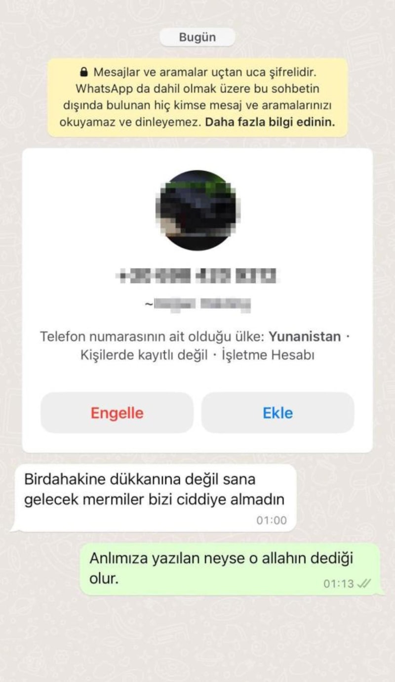 Saldırganlar, işletmeyi kurşunladıktan sonra iş yeri sahibine yabancı bir numaradan, "Bir dahakine dükkanına değil sana gelecek mermiler. Sen bizi ciddiye almadın" şeklinde mesaj atarak tehdit etti.