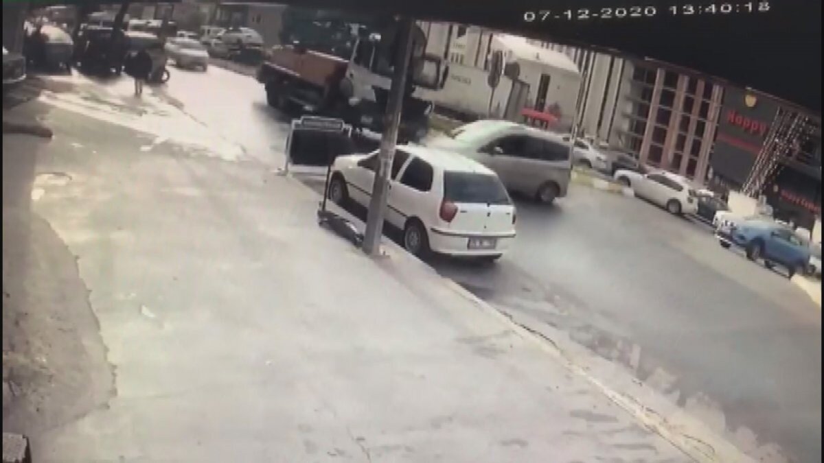 İstanbul’un Esenyurt ilçesi Zafer Mahallesi'nde vinç taşıyan kamyon, kavşaktan dönüş yaparak yola çıkan hafif ticari araç ile çarpıştı.