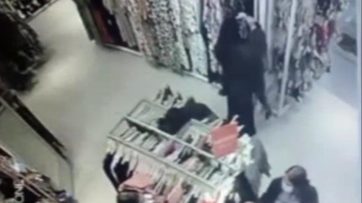 Suriye uyruklu şüpheliler Kaousar A.(43) ve Hüsna İ.(19), alışveriş merkezinde bulunan bir giyim dükkanına girdi.