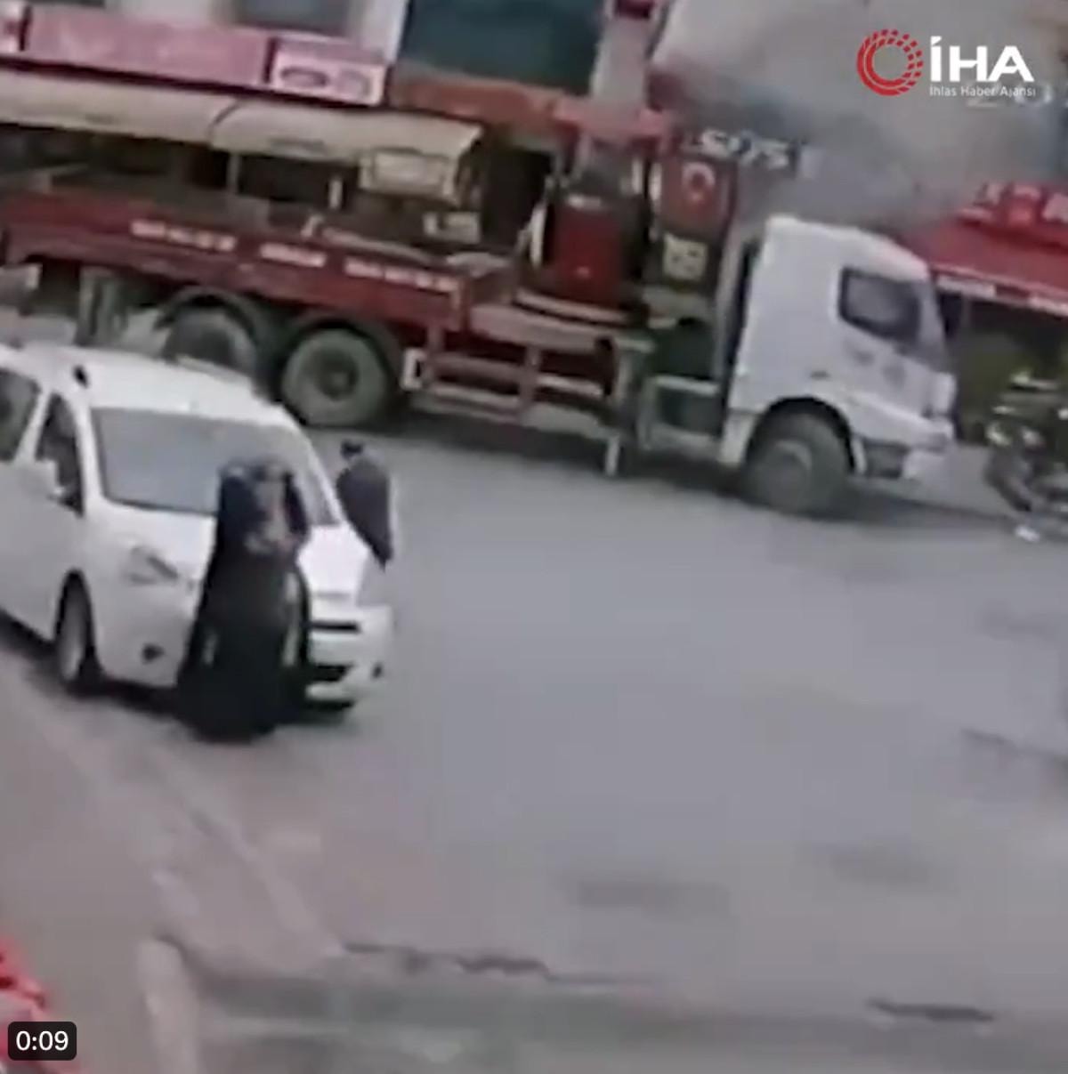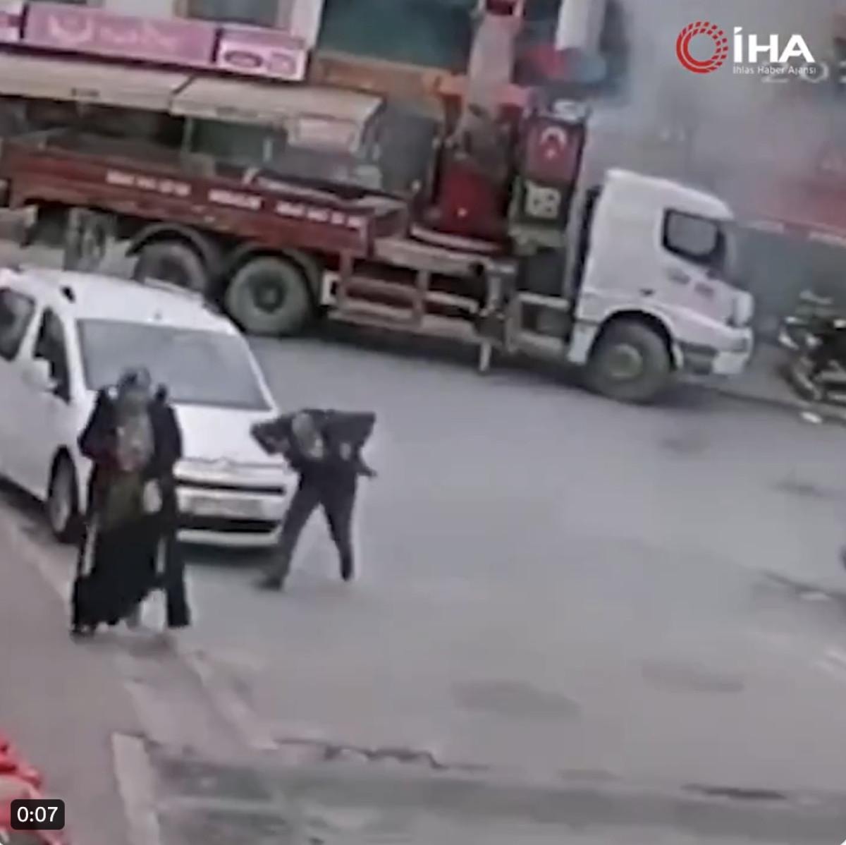 Öte yandan fırlayan kaya parçaları, caddenin karşısındaki bir iş yerinin tentesine zarar verdi. Patlama anı ise bir iş yerinin güvenlik kamerasına anbean yansıdı.