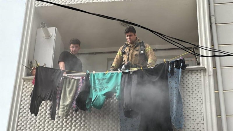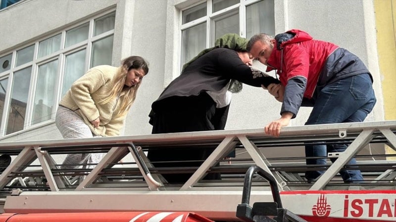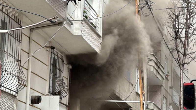 Binanın bodrum katındaki yangın nedeniyle üst katlarda mahsur kalan bina sakinlerinin kurtarılması ve yangının söndürülmesi için itfaiye ekipleri çalışma yaptı.