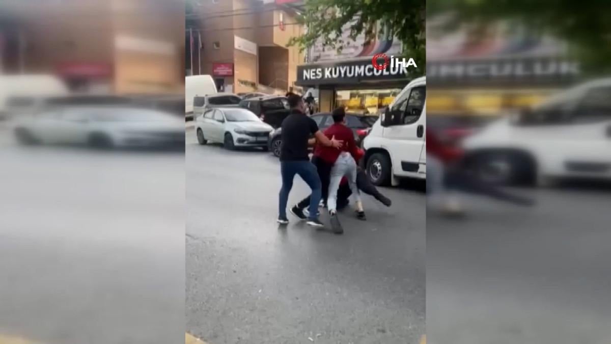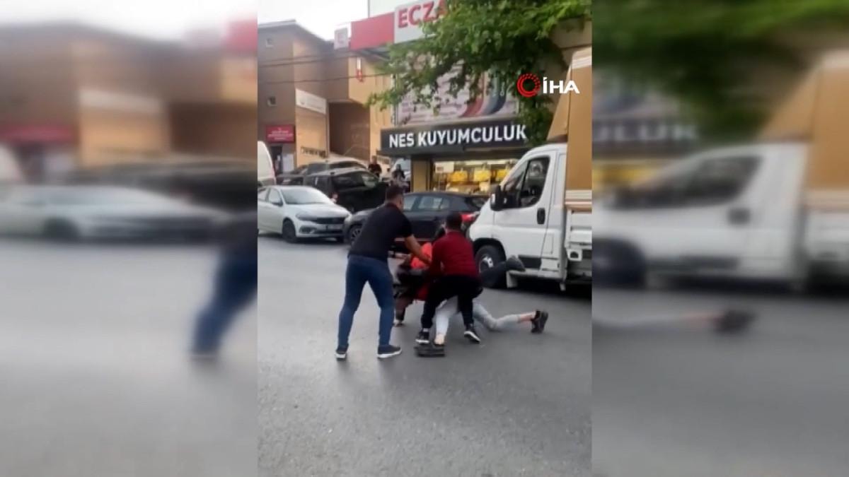 İstanbul Esenyurt'ta cadde üzerinde seyir halindeki araç sürücüsü ile motokurye arasında yol tartışması çıktı.