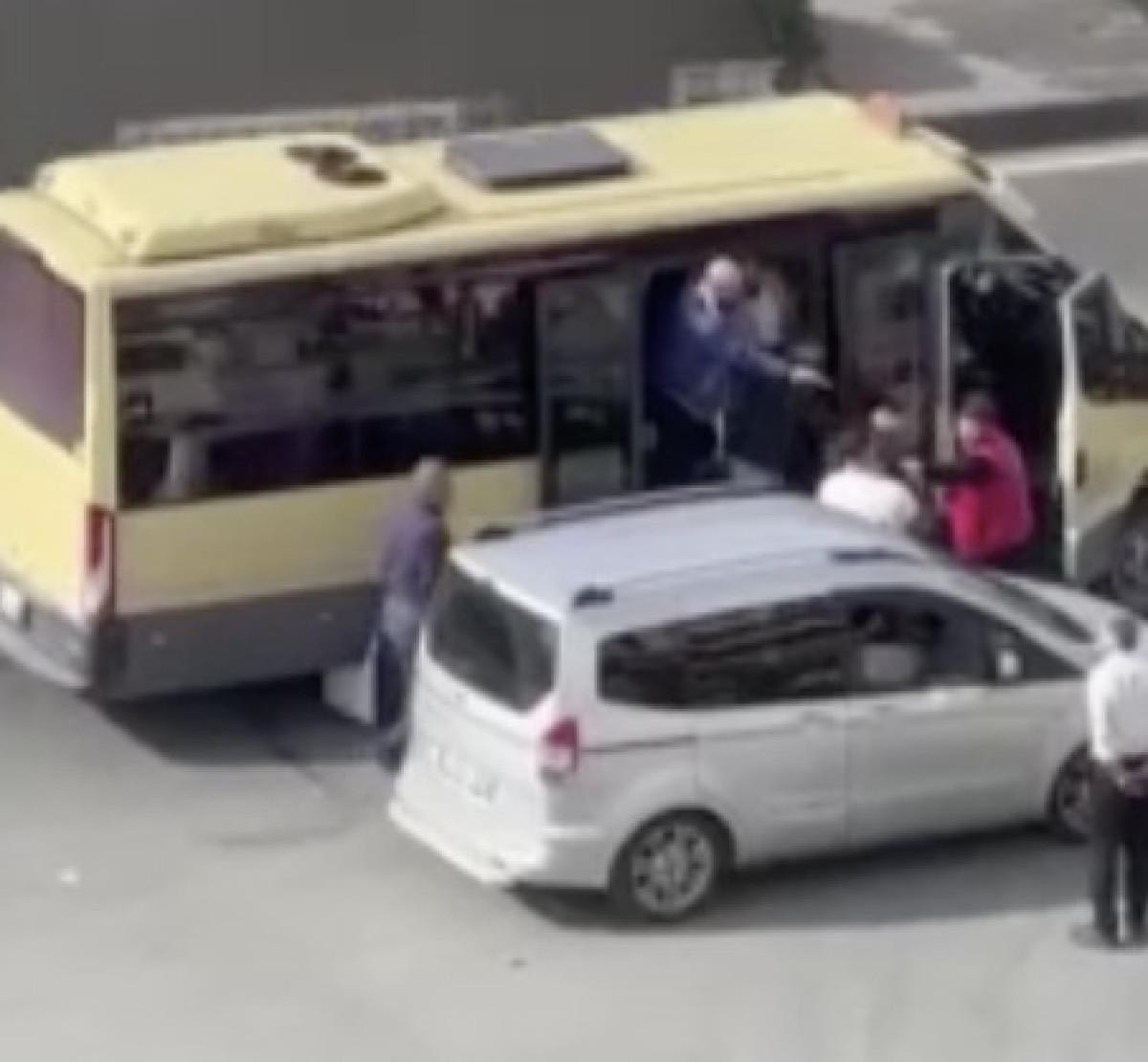 Bu sırada minibüsünden inen şoför ise ticari aracın içindeki diğer adamı çekerek dışarı çıkarmaya çalıştı.