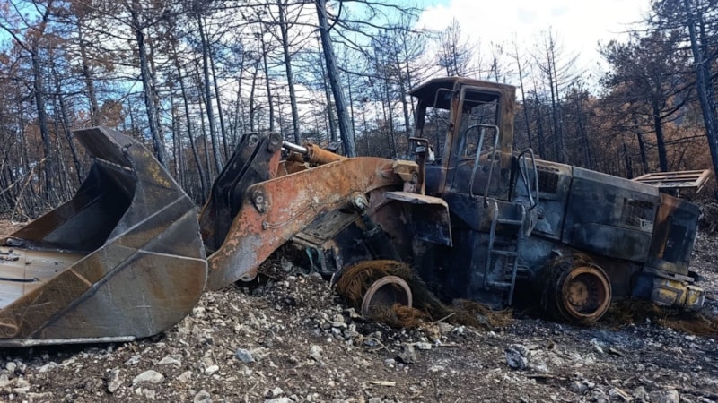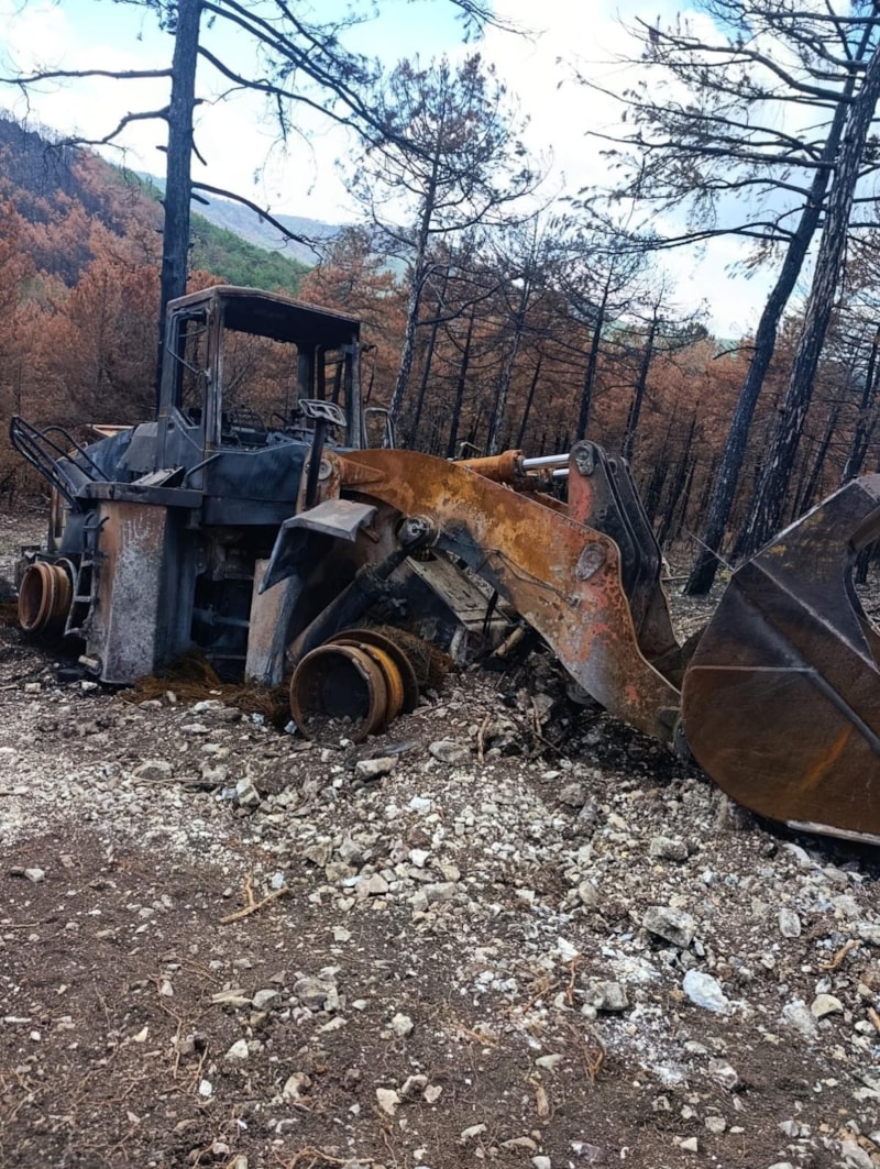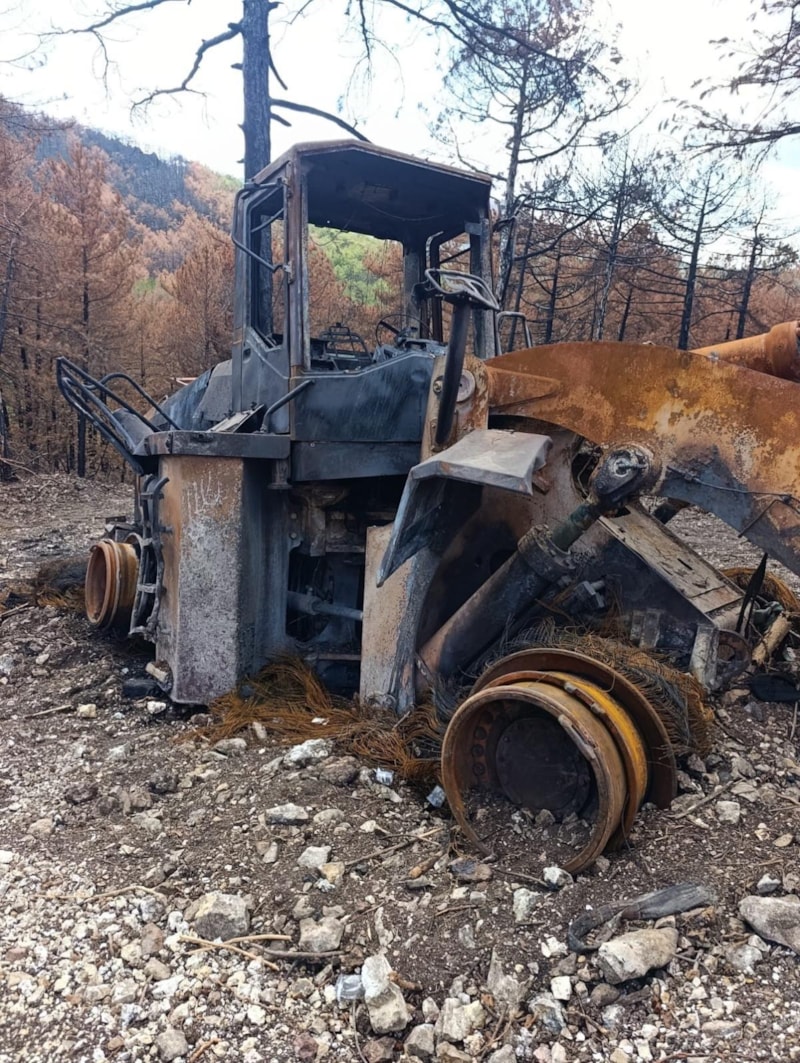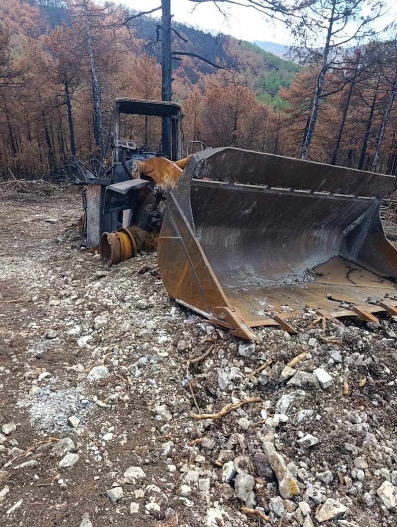 Yangınlarda ekiplerin kullandığı arazözler ve iş makinaları da adeta küle dönmüştü.