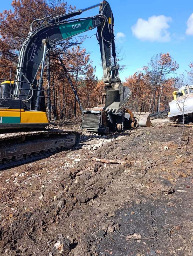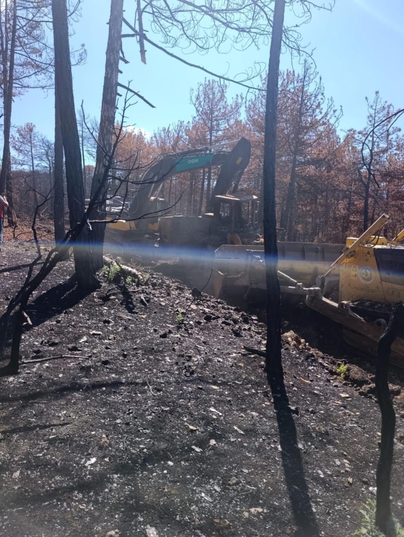 Eskişehir'in Seyitgazi ilçesinde çıkan ve 10 kişinin şehit olduğu orman yangınlarında kül olan iş makinelerinden sonuncusu, ekskavatör ve dozerin çalışması sonucunda bulunduğu noktadan çekildi.