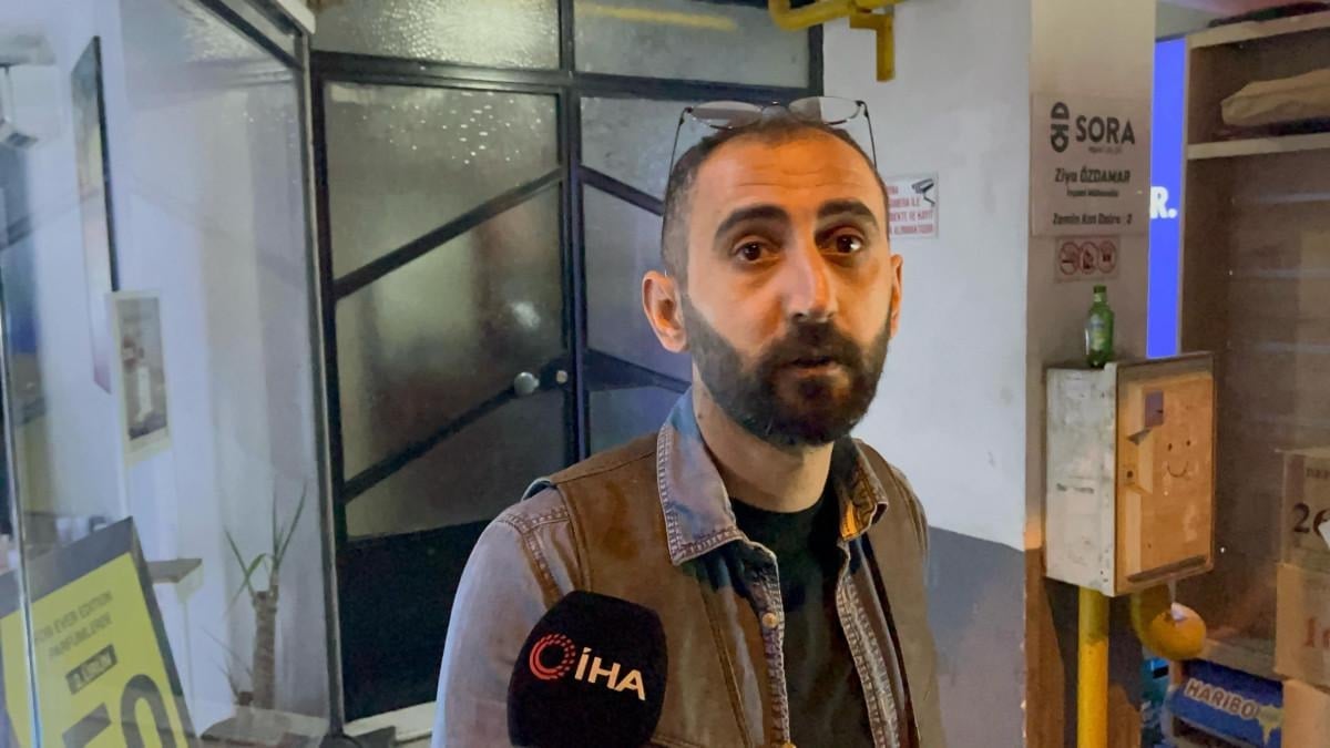 "Dükkanda çalışıyordum o esnada, dışarıya çıktığımda adam dükkanımın önüne geldi, düştü. Her tarafı kan içinde görünce, tişört ile yaralarına bastırdım. Yarım saat sonra ambulans geldi. Baktık ki 2 yerinden yara almış. İki yere de tişört ile baskı uyguladık. 2 bıçak yarası vardı ama göğsündeki oldukça derindi. Durumunu biz de merak ediyoruz. Biz bilincini açık tutmak için çaba gösterdik. Şahısları ilk kez gördüm, ben bile şaşırdım. Benim dükkânımın önüne nasıl denk geldiler diye şaşırdım"