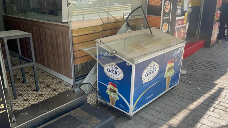 Korkuluk ve bankın ardından yine sert bir biçimde bahse konu dükkana girdiği görülüyor.