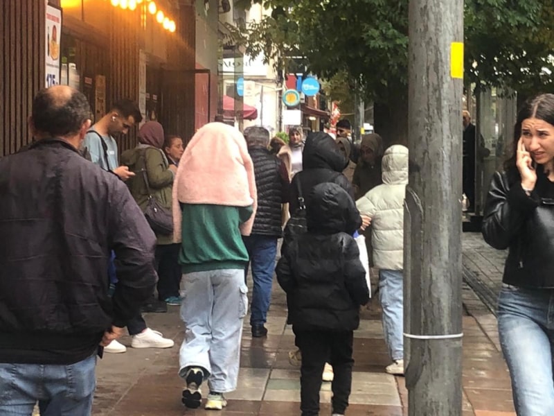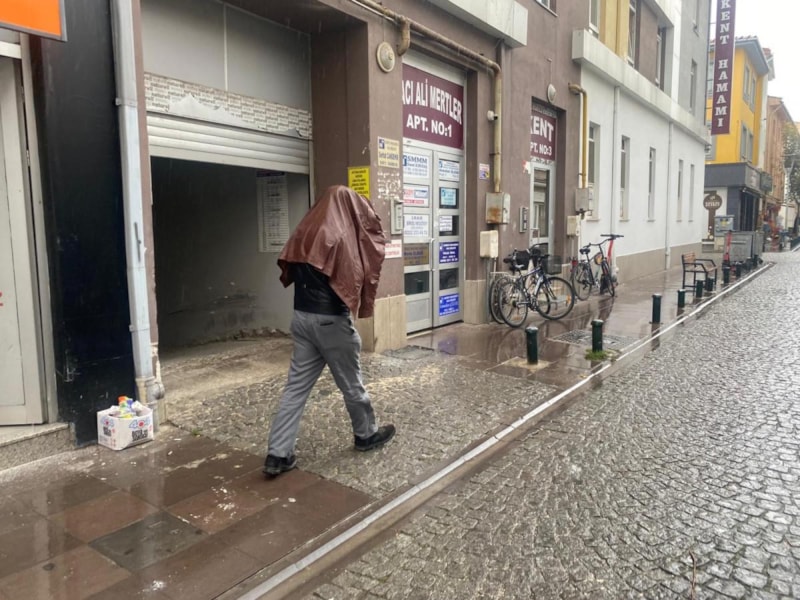 Bazı vatandaşlar ıslanmamak için kapalı alanlara doğru koşarken, bazıları ise ceketleri ve şemsiyeleri ile kendilerini yağmurdan korumaya çalıştı.
