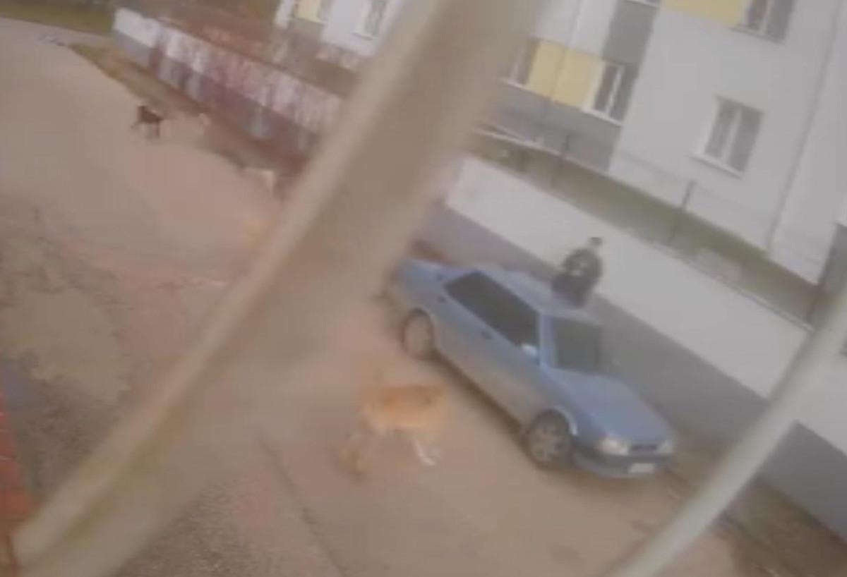 Görüntülerde, köpeklerden kurtulan çocuğun yanına bir kişinin geldiği ve birlikte sokaktan ayrıldıkları görüldü.