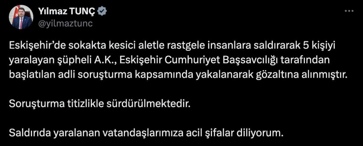 Adalet Bakanı Yılmaz Tunç, şüpheli A.K. hakkındaki soruşturmanın titizlikle yürütüldüğünü açıkladı.