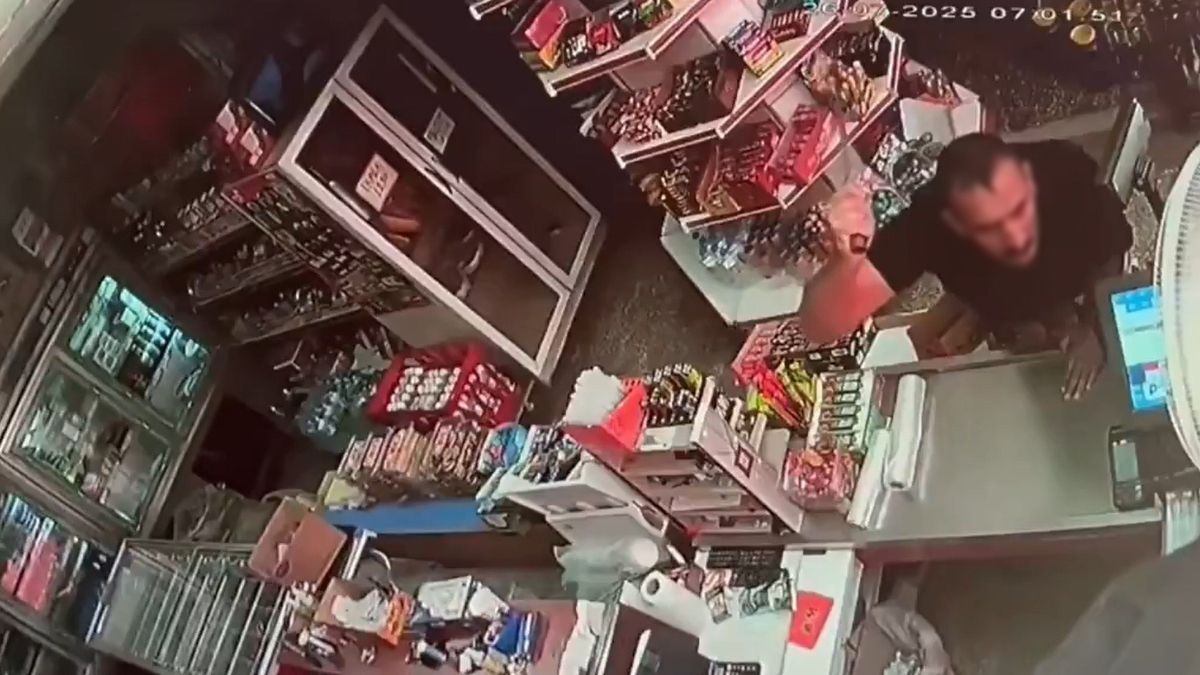 Tehditler savuran A.İ.'nin saldırı anları, marketin güvenlik kameralarına anbean yansıdı.