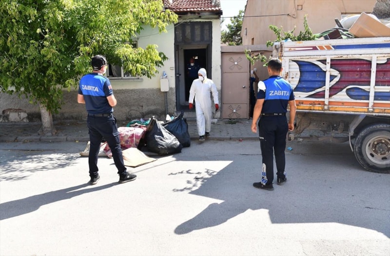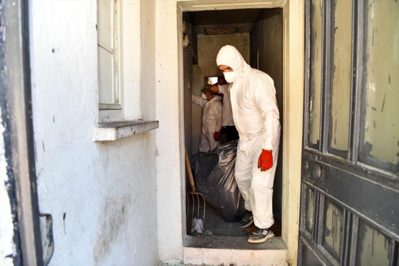 İlçe Hıfzıssıhha Kurulu kararıyla Temizlik İşleri Müdürlüğü ekipleri, polis ve zabıta ekipleriyle eve girerek temizlik çalışması başlattı.