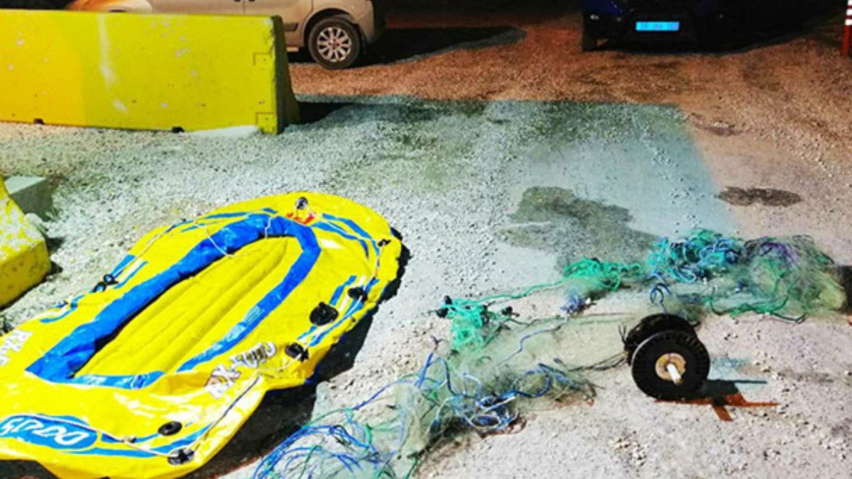 Jandarma ekipleri, şüphelilerin araçlarında ve olay yerinde yaptıkları aramada şişme bot, makara, makaraya bağlı 50 metre ip, 50 metre uzunluğunda balık ağı buldu.