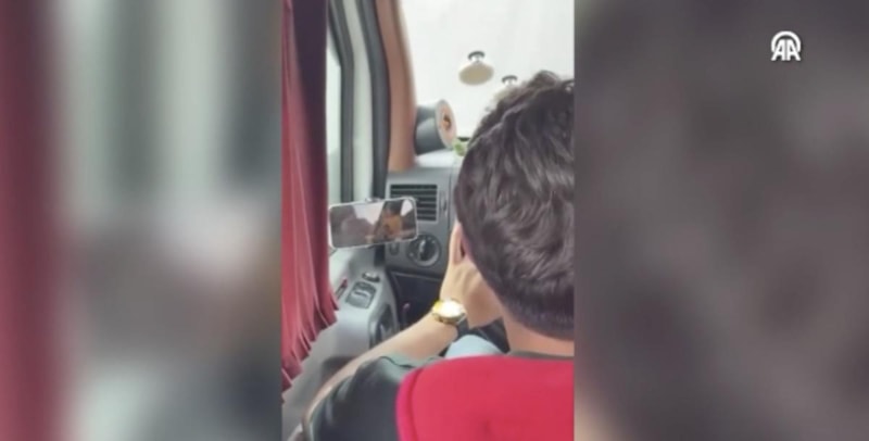 Ekipler, Ankara-Bursa kara yolunda seyreden minibüsün şoförünün araç kullanırken cep telefonundan dizi izlediğini tespit etti.