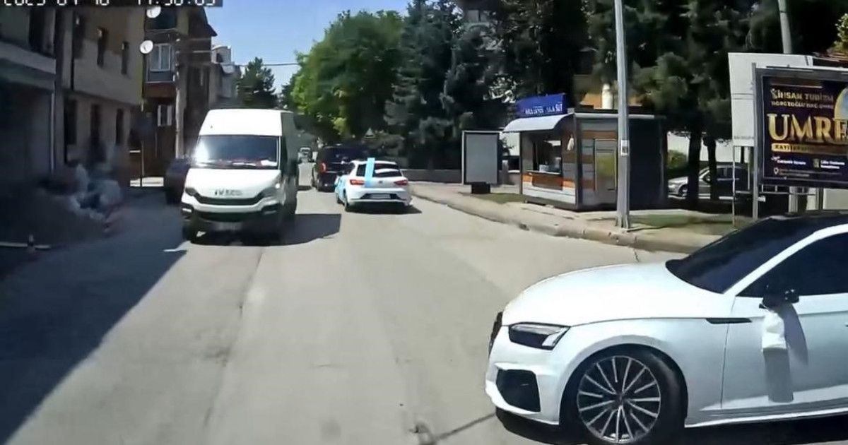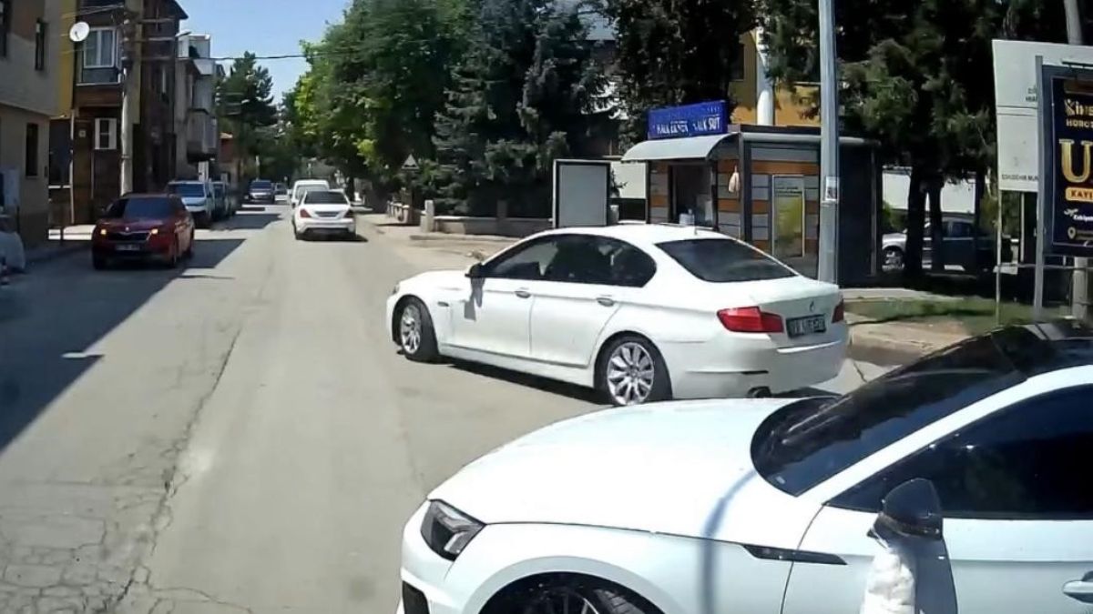 Eskişehir’in Sümer Mahallesi’nde, Maral Sokak ile Evliyagil Sokak’ın kesiştiği kavşakta kaydedilen görüntülerde, düğün konvoyuna yol açmak isteyen bir sürücü, trafiği adeta durma noktasına getirdi.