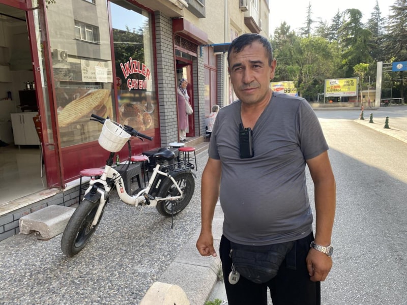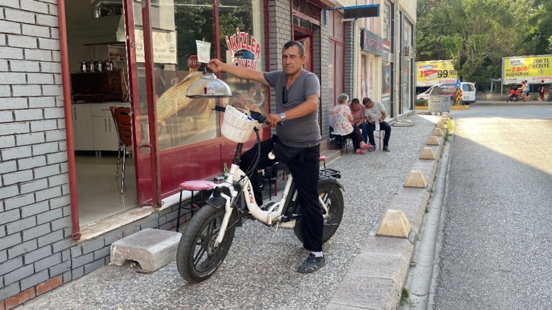 Elektrikli bisiklet ile nasıl servis yapmaya başladığını anlatan Sebahattin Güler, "İlk önce bisikletle servis yapıyordum. Bisiklet beni yormaya başladı. Esnaf arkadaşlar elektrikli bisiklet almamı önerdi. Ben de elektrikli bisiklet alıp işimi kolaylaştırdım. Geçen seneye kadar eleman çalıştırıyorduk, şimdi karı-koca kendimiz çalışıyoruz. Zaten dükkanı eşimin üzerine açtım.