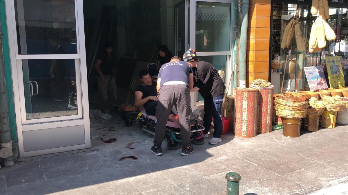 O esnada çevresinde bulunan demir profillere çarpan şahsın bacağında kesik oluştu.