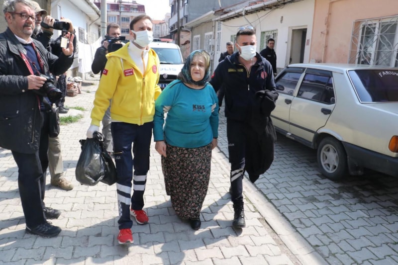 Polisler tarafından evden çıkarılan Nahide Gönültaş, sağlık kontrolünden geçirilmesi için ambulansla Yunus Emre Devlet Hastanesi’ne götürüldü.