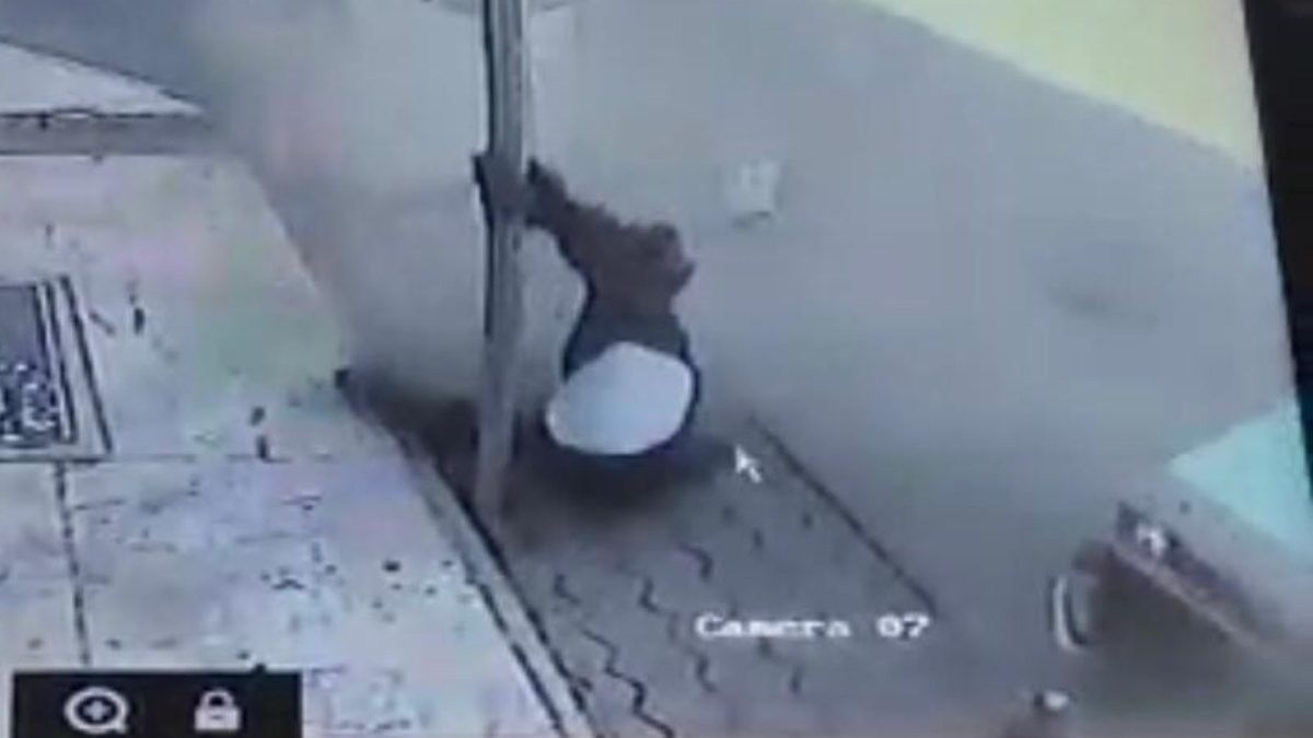 Güvenlik kameralarına yakalanan trafik kazasında, çarpmanın etkisiyle savrulan otomobil yol kenarında yürüyen yayaya çarptı.