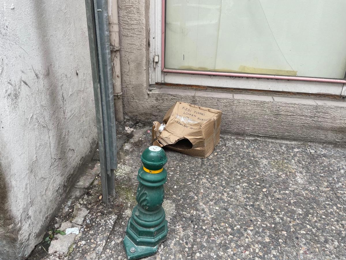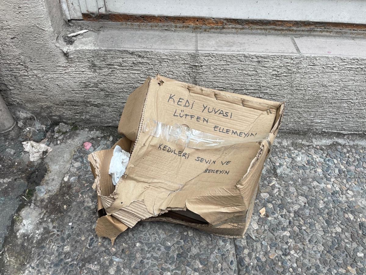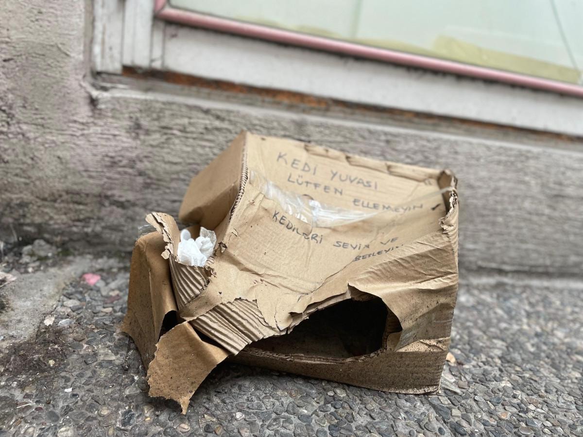 Yazılan nota rağmen kimliği belirsiz kişi veya kişiler tarafından, kedi yuvası kullanılamaz hale getirildi.