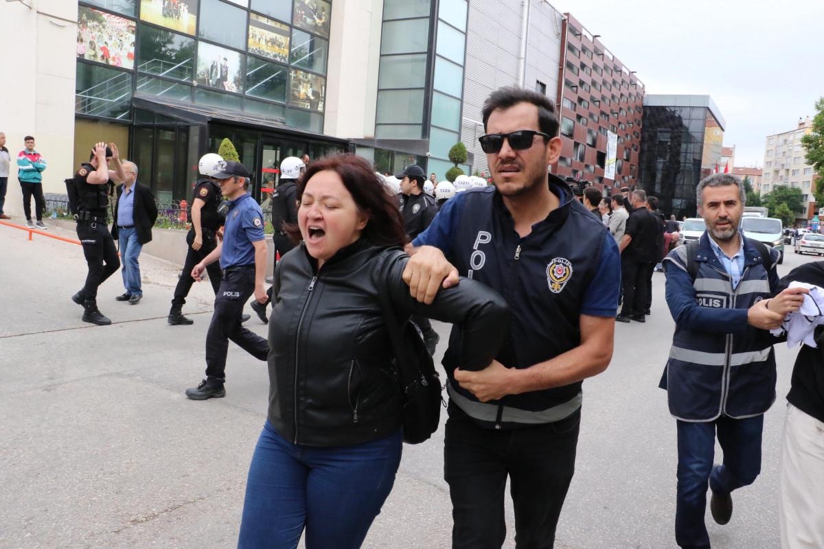 Buna rağmen eylemi sürdürmek isteyen gruba, çevik kuvvet ekipleri müdahale etti.