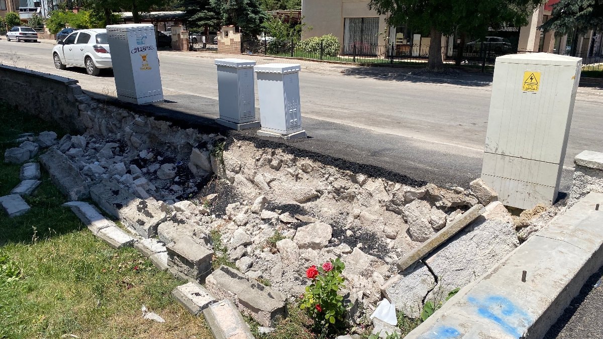 Eskişehir’in Akarbaşı Mahallesi Köprü Sokak ile Şehit Güngören Bostan Sokak kesişiminde, pazarcıların kaldırıma park ettiği kamyonlar nedeniyle bir bahçe duvarı içeri doğru çöktü. Apartman sakinleri durumu yetkililere bildirirken, yaklaşık bir haftadır yıkık halde kalan duvar onarılmadı.