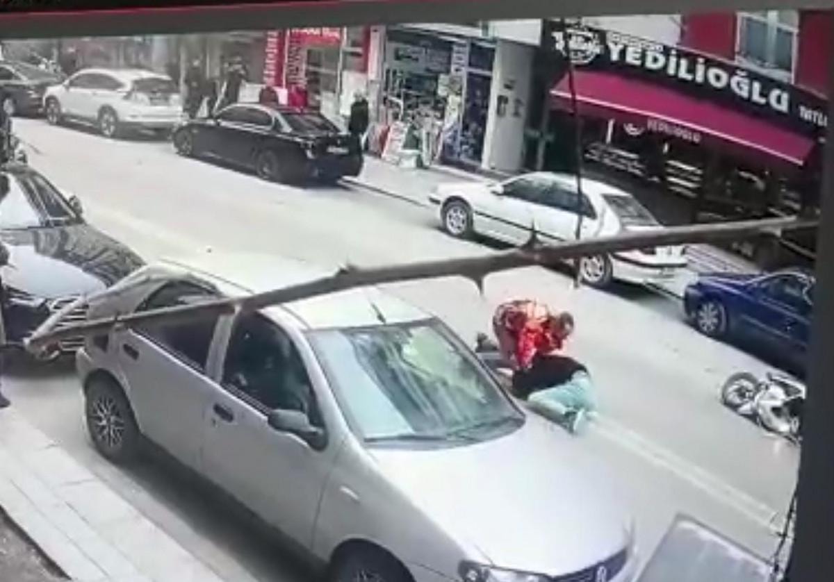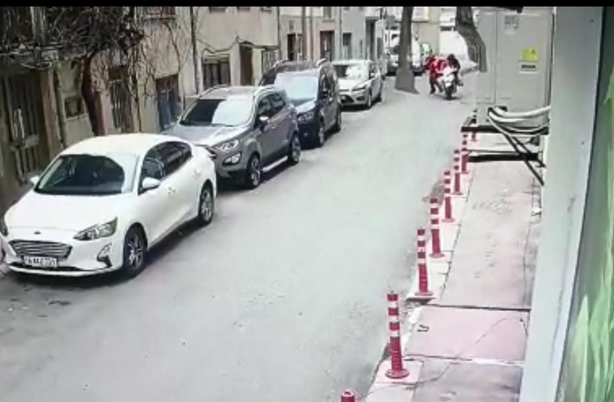 Arif A.’nın motosikleti çaldığı ve Aktaş’ın üzerine atlayıp yakaladığı anlar ise caddedeki iş yerlerinin güvenlik kamerasına yansıdı.