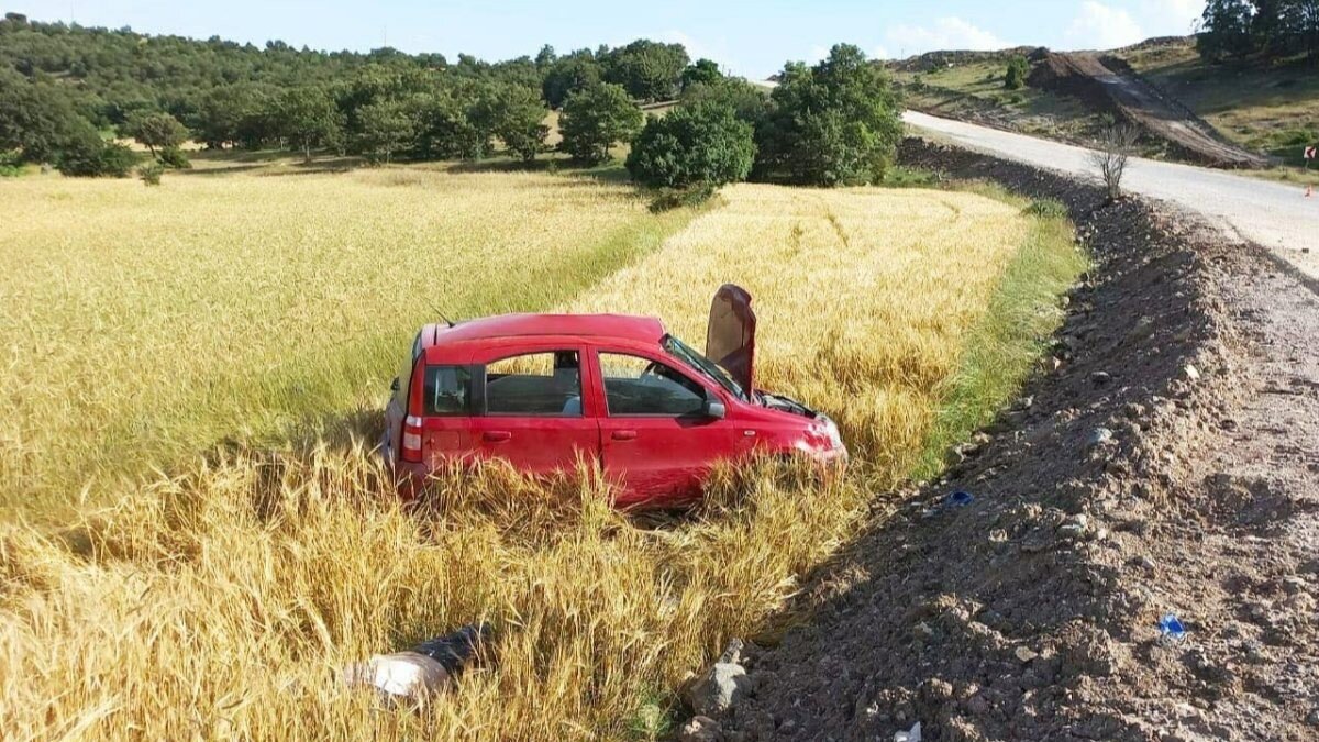 Araç, yol kenarındaki tarlaya yuvarlandı.