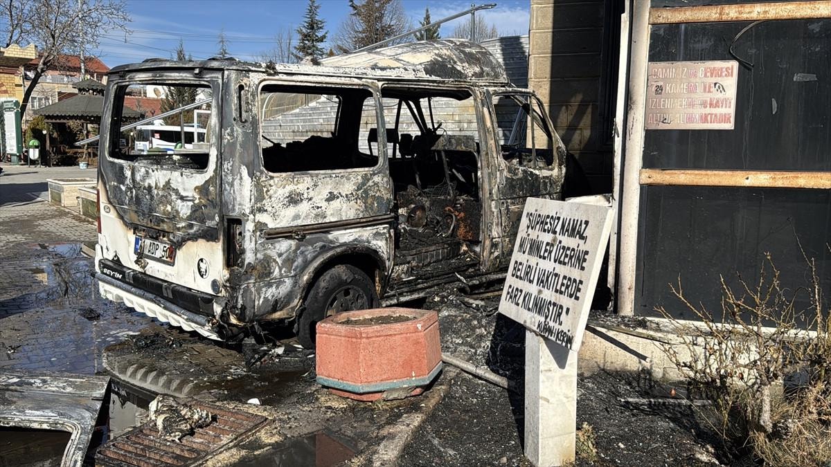 Bir süre ilerleyen kamyonet, cami merdivenlerine çarptı ve yanmaya başladı.
