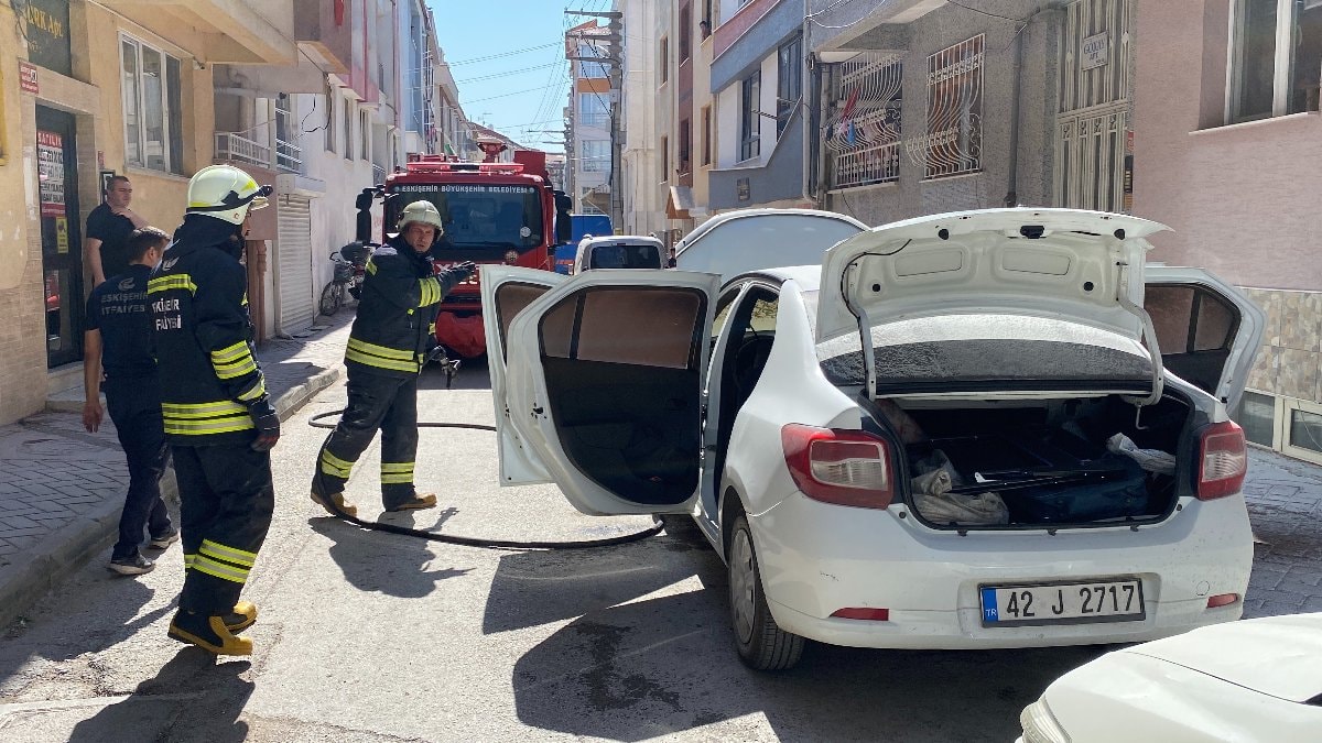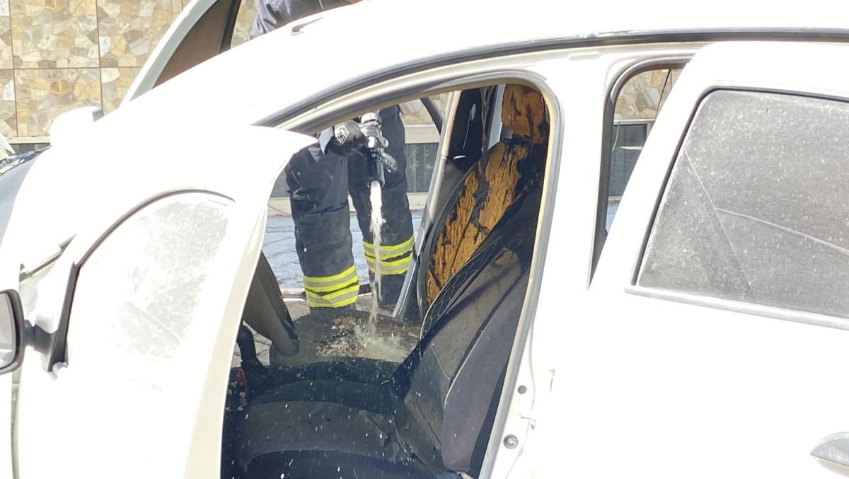 Ekipler, kapıları açık vaziyette olan otomobilin içerisinde çıkan yangına müdahale etti. Yangın büyümeden kontrol altına alınırken, aracın koltuklarında yanık meydana geldiği görüldü.