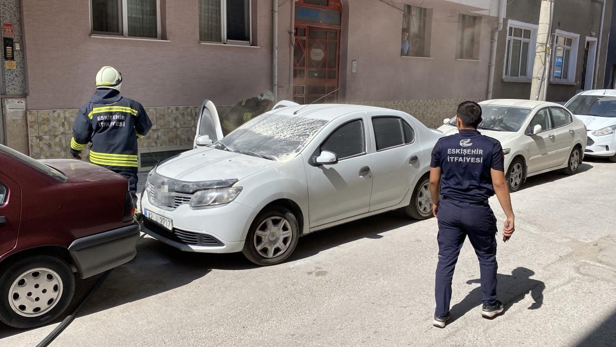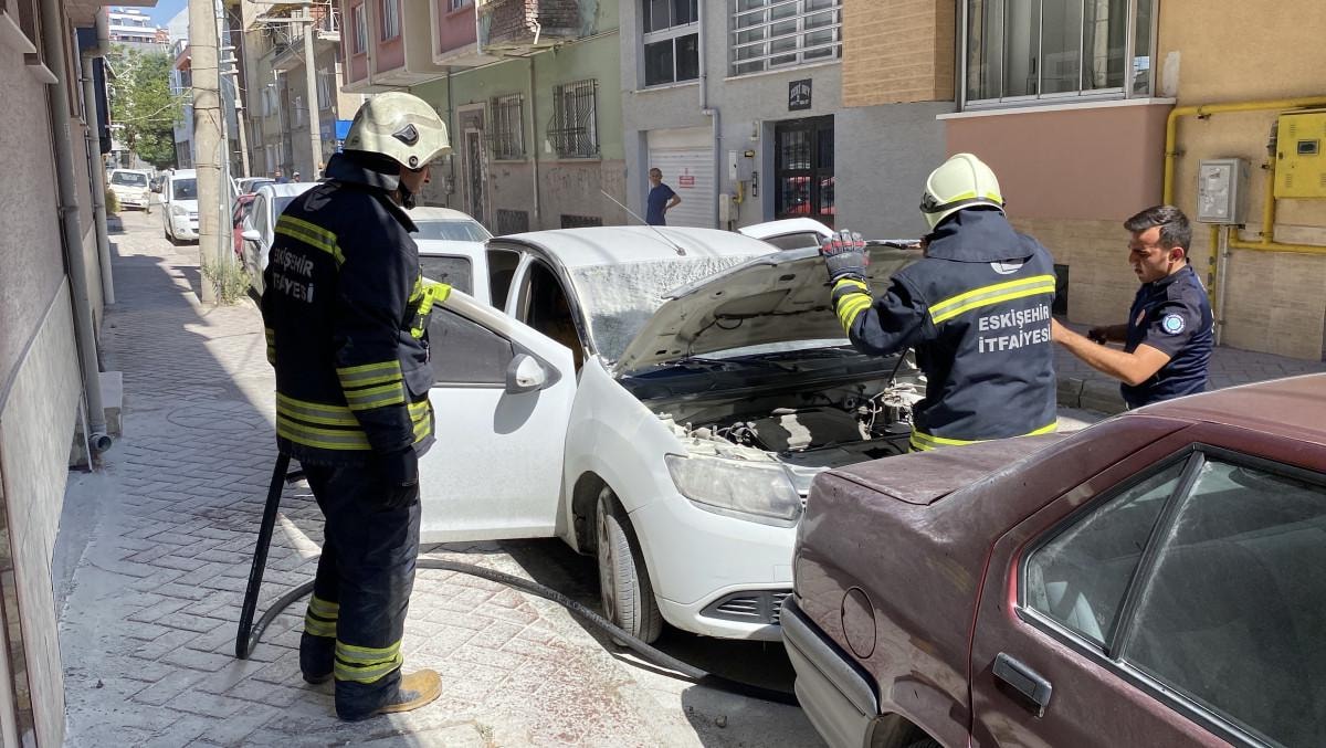 Eskişehir Kırmızıtoprak Mahallesi Osmançavuş Sokak'ta park halinde bulunan 42 J 2717 plakalı otomobilden, henüz bilinmeyen nedenle dumanlar yükselmeye başladı.