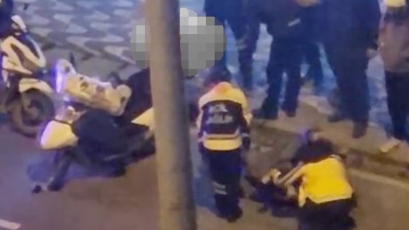 Yerden kalkamayan yaralı kuryeyi fark eden vatandaşlar durumu 112 Acil Servis'e bildirdi.