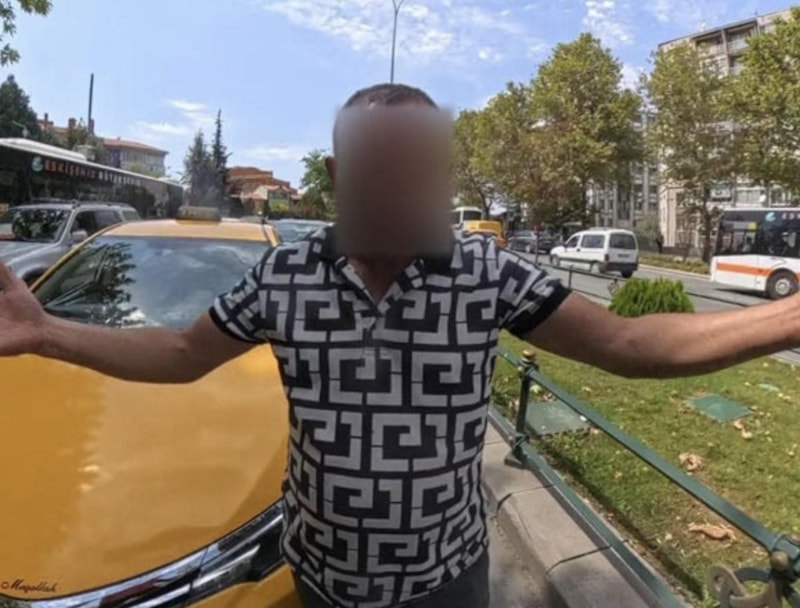 Taksi şoförü, tepki üzerine aracından indi.