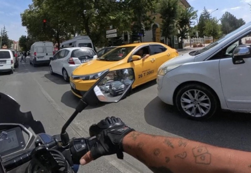 Son olarak, Eskişehir'in Odunpazarı ilçesi Atatürk Bulvarı üzerinde meydana gelen olayda, trafikte seyreden bir kurye, araçların arasından bir anda çıkan taksiyle kafa kafaya geldi.