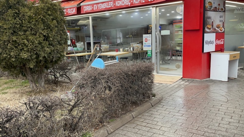 İşletme önündeki kan lekeleri, çalışanlar tarafından yıkandı.