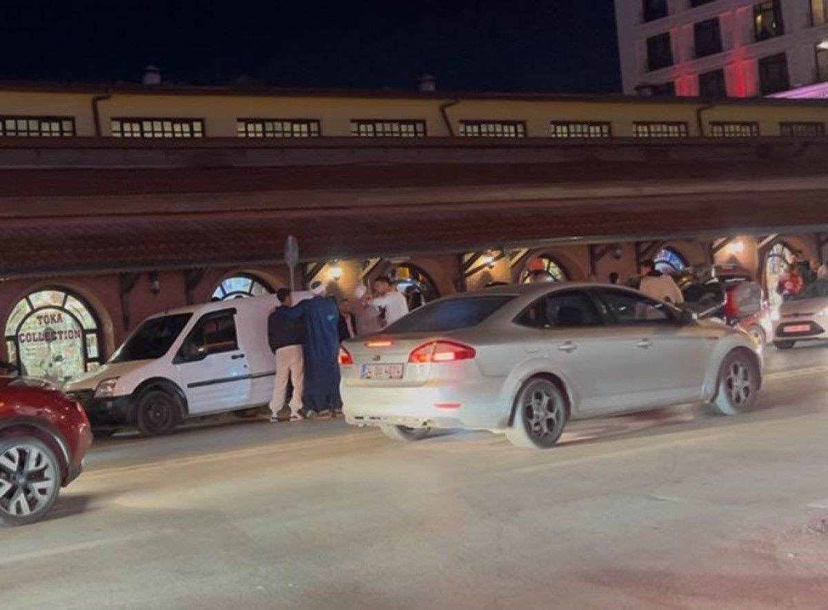 Daha sonra araçtan inen bir grup, yine panelvanın sürücüsünün üzerine yürüyerek tehdit etti.