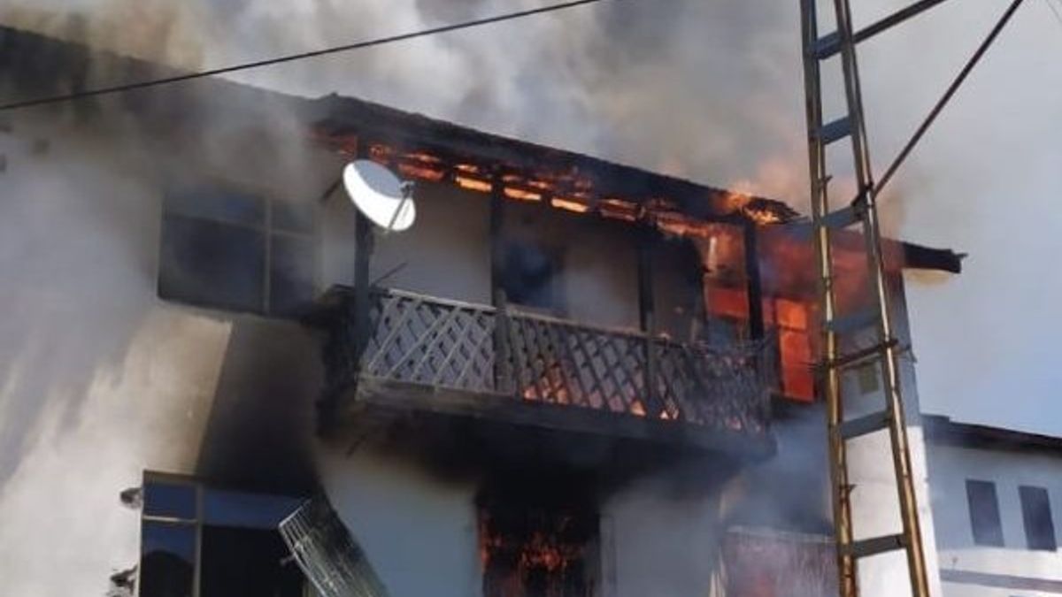 Karabük'ün Safranbolu ilçesin Davutobası köyünde, iki katlı evde bilinmeyen bir nedenle yangın çıktı.