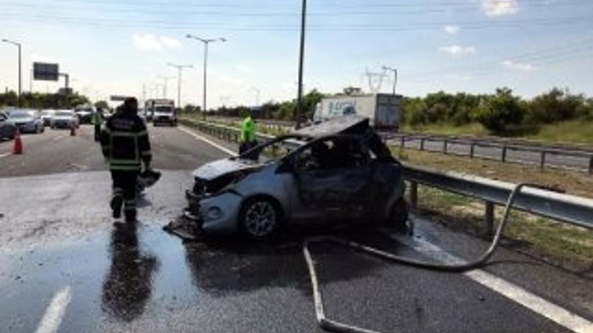 Şiddetli çarpmanın etkisiyle otomobil alev alarak yanmaya başladı. Yoldan geçenlerin yangın söndürme tüpleriyle müdahale ettiği alevler kısa sürede tüm otomobili sardı. Otomobilde bulunanlar ise bir anda alev topuna dönen tek kapılı olan araçtan çıkamadı.