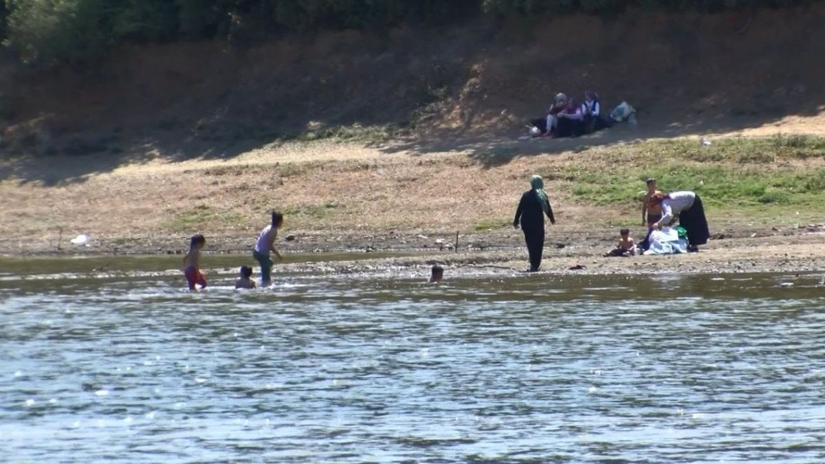 Baraj gölünde balık tutanların yanı sıra, 'tehlikelidir' uyarısına rağmen yüzenler olduğu gözlendi.
