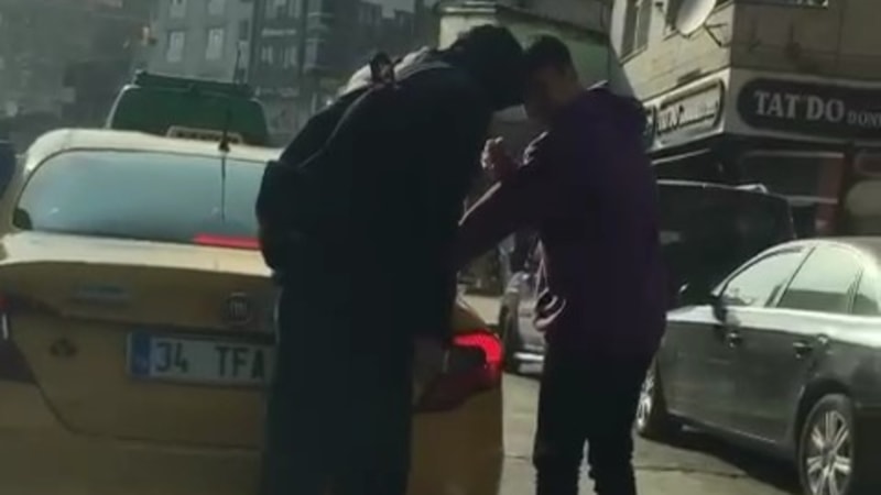 Patenli gençlerden biri de kendisini görüntüleyen sürücüyü telefonuyla kayda almaya çalıştı.